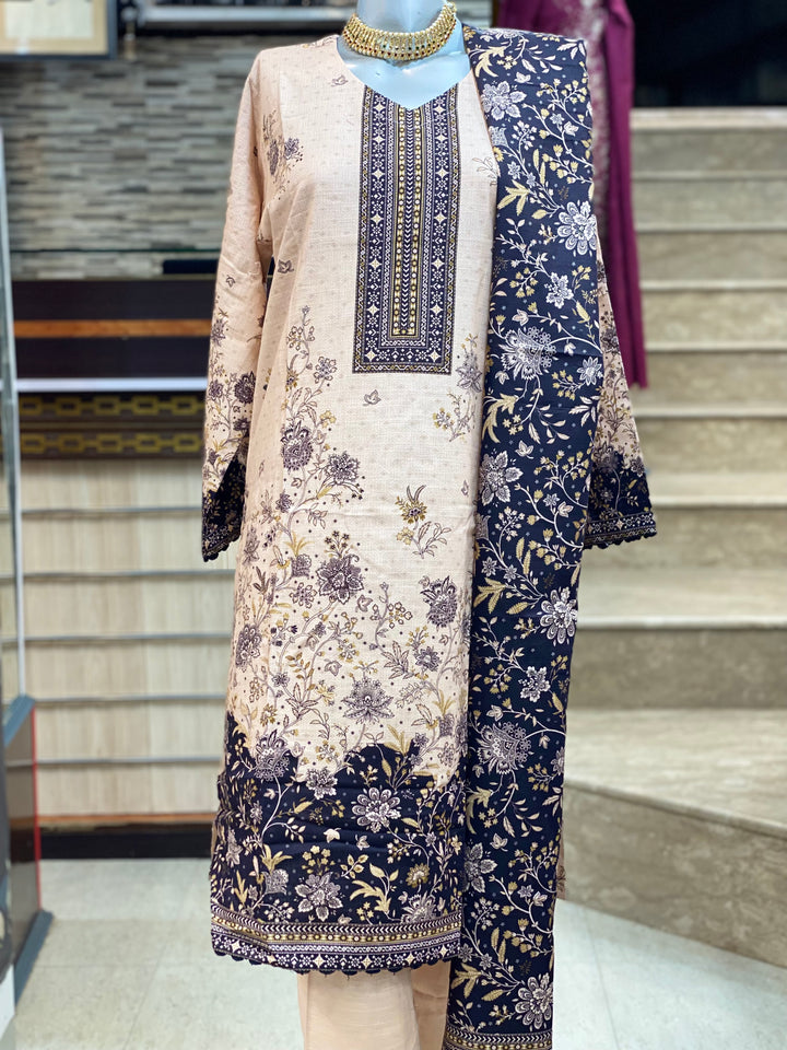 Bin Saeed 3Pc Stitched Khaddar Printed Suit – BSK-003