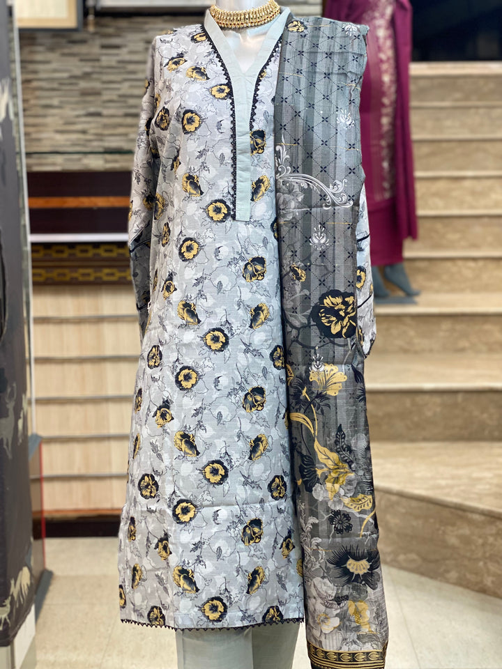 Bin Saeed 3Pc Stitched Khaddar Printed Suit with sequence Dupatta – BSK-017