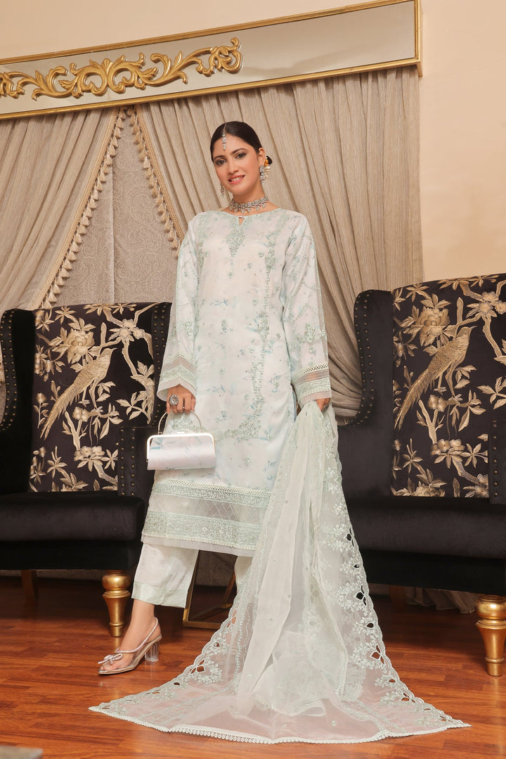 - Exquisite embroidered semi-stitched ensemble crafted for festive and formal occasions