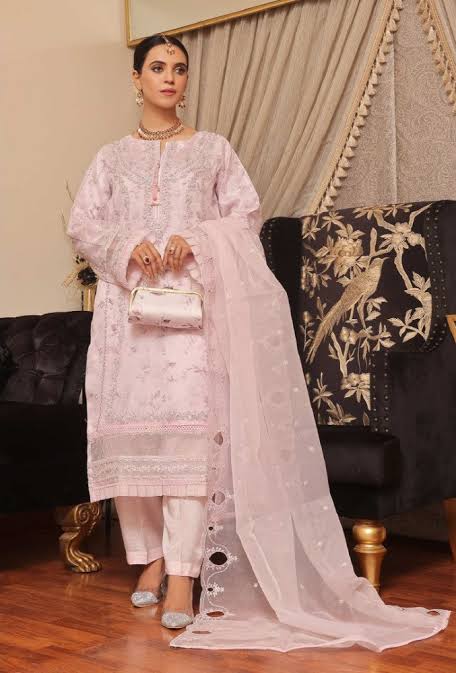 - Exquisite embroidered semi-stitched ensemble crafted for festive and formal occasions