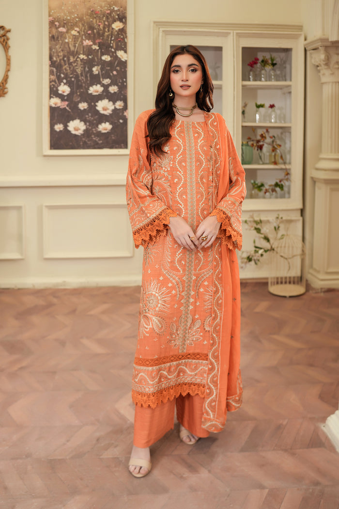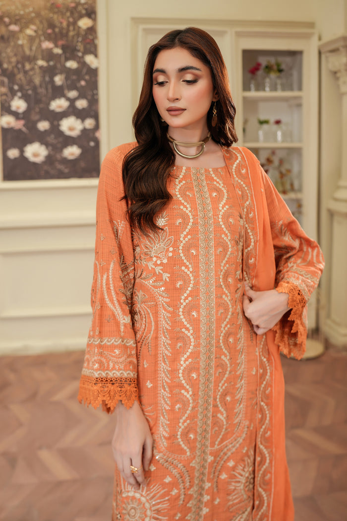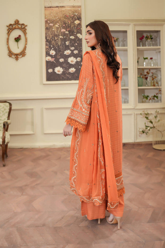 - Paired with a soft, flowy embroidered chiffon dupatta for an elegant touch