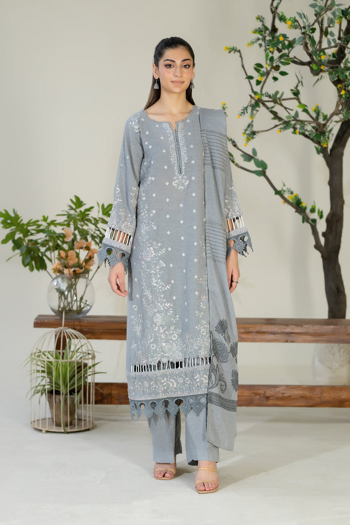 Embroidered Karandi with Jacquard Shawl – Semi-Formal Unstitched 3PC Suit