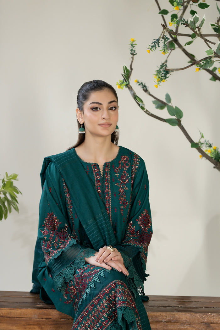 Embroidered Karandi with Jacquard Shawl – Semi-Formal Unstitched 3PC Suit