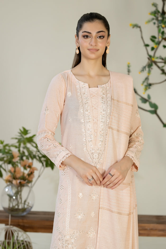 Embroidered Karandi with Jacquard Shawl – Semi-Formal Unstitched 3PC Suit
