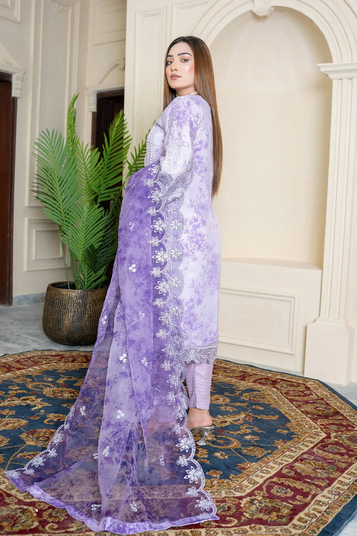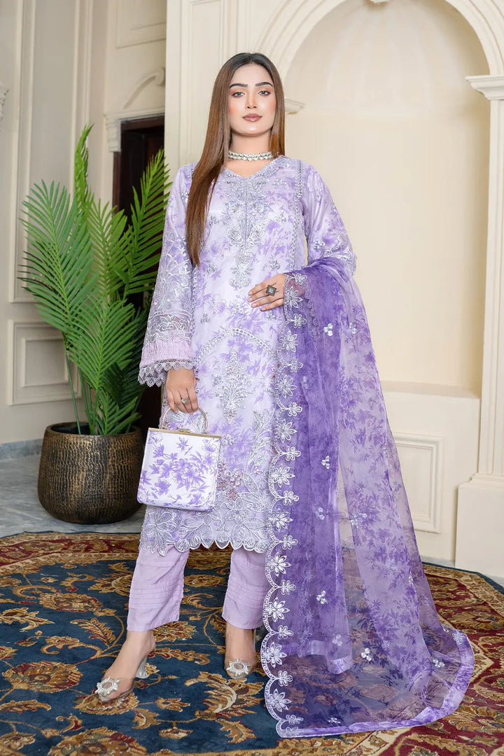 - Luxurious semi-stitched organza ensemble designed for festive and formal occasions